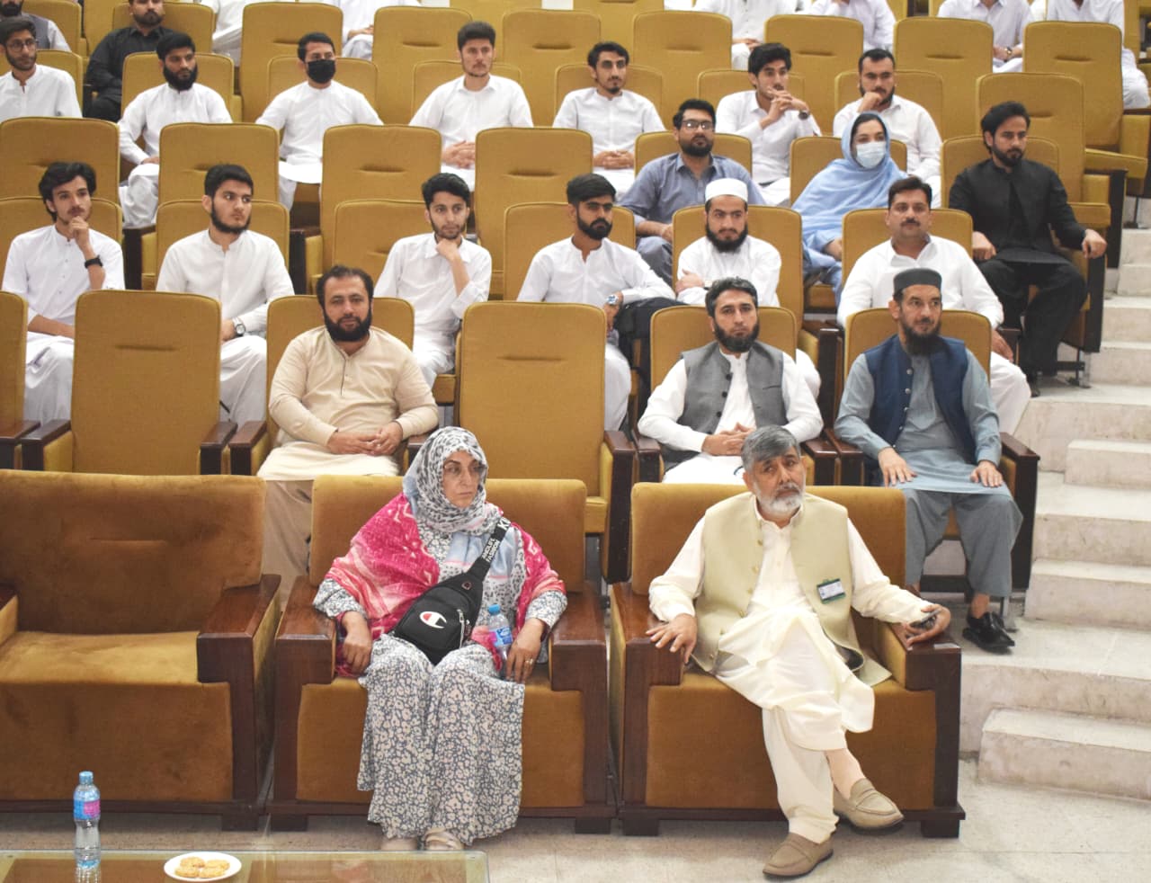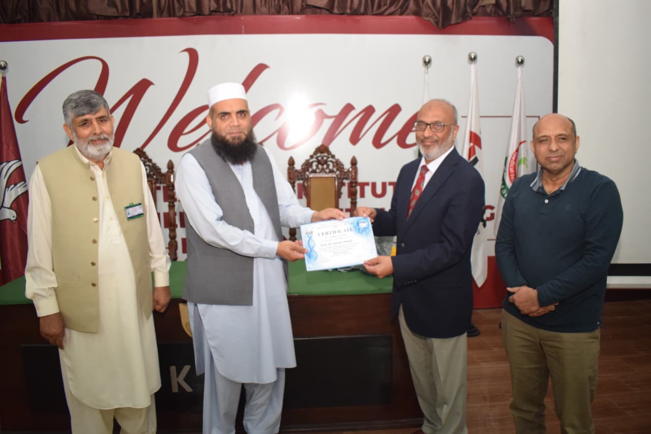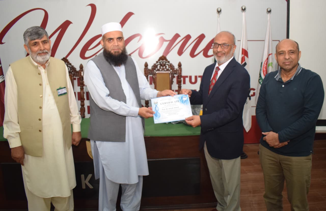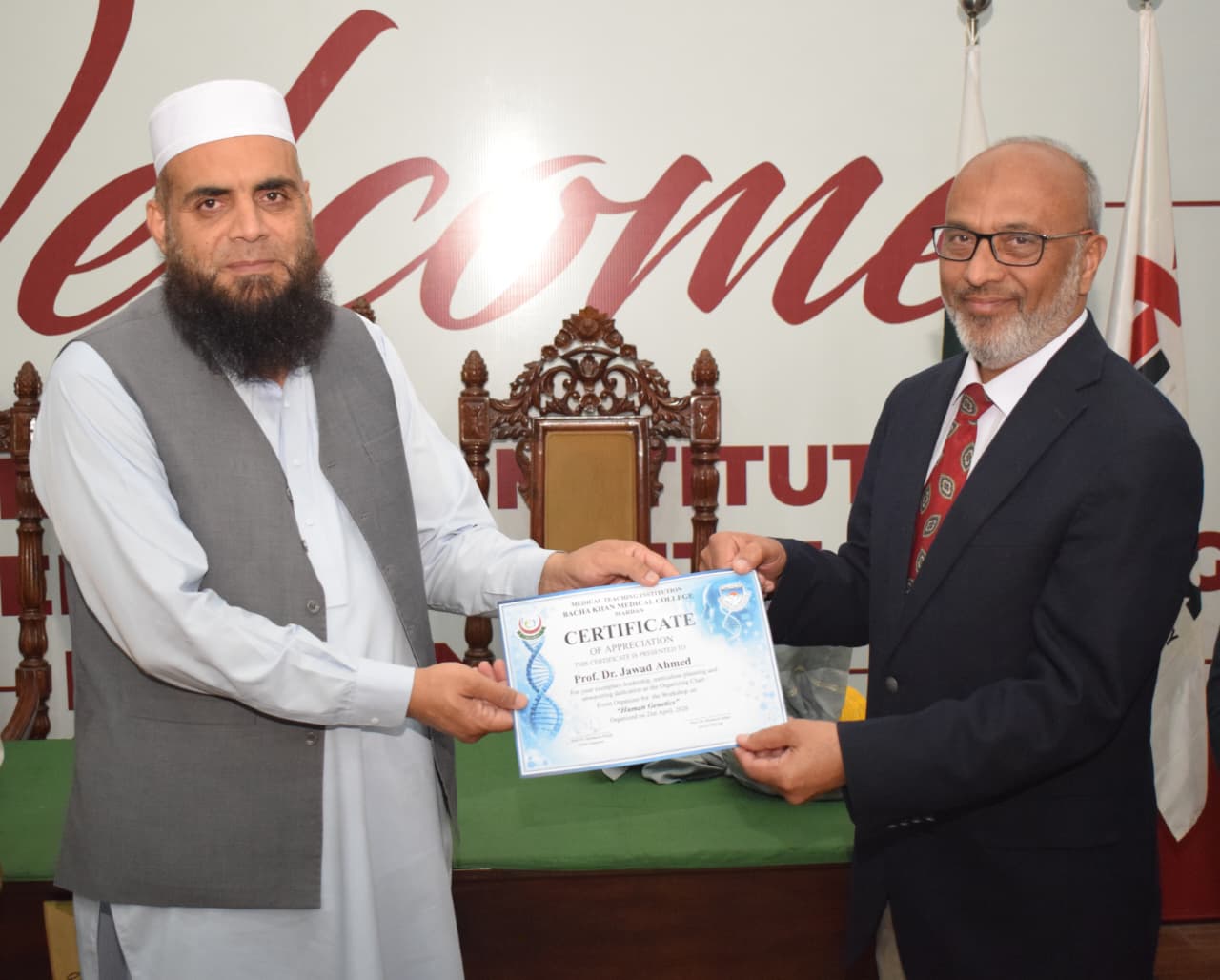 The event features a presentation by Dr. Asmat Shaheen from the Department of Biochemistry, with guest speaking contributions from Professor Dr. Musharraf Jelani and the CEO/Dean of BKMC, Dr. Jawad Ahmad.